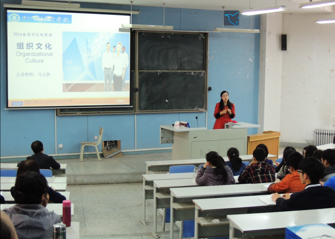 3月31日下午,全院教师在10号教学楼观摩了第三届青年教师教学技能大赛三等奖获得者马文静副教授讲授的《管理学》。马老师以“海尔集团”文化构建为例,讲解了组织文化的定义、作用,并分析组织文化如何影响管理者、员工如何学习组织文化等内容。她深入浅出,课程内容设计合理,以万达集团、中强瓷业等大量案例进行分析,利用视频等现代媒体,讲解深刻、清晰,课堂互动生动,学生反馈良好。