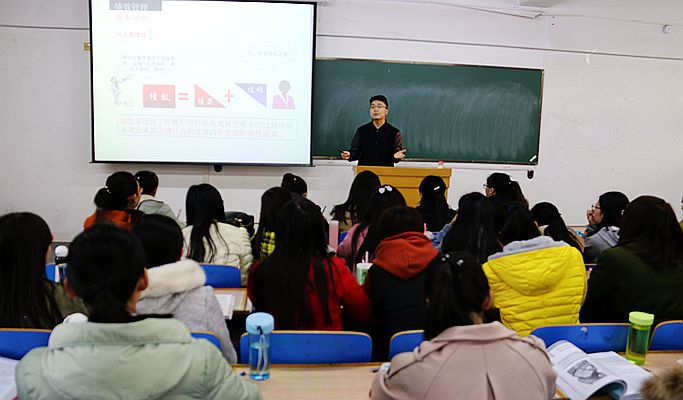 3月16日上午,第四届青年教师教学技能大赛商学院初赛第二场比赛在7号教学楼505教室举行。由黄勇老师为2016级本科生讲授人力资源管理课程。学院领导、专家评委及教师代表参加本场比赛。