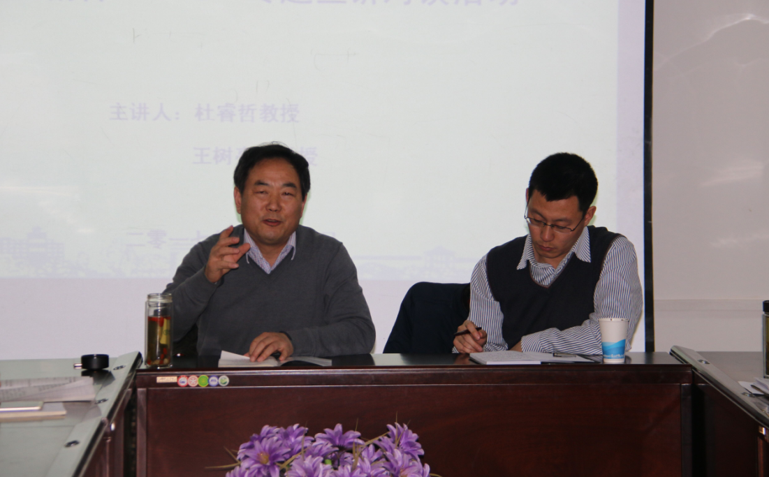 12月1日,法学院院长杜睿哲教授、马克思主义学院王树亮副教授应邀到我院参加“十九大精神‘1+1’专题宣讲”对谈活动。学院师生党员50余人到场聆听,会议由党委书记李长著主持。