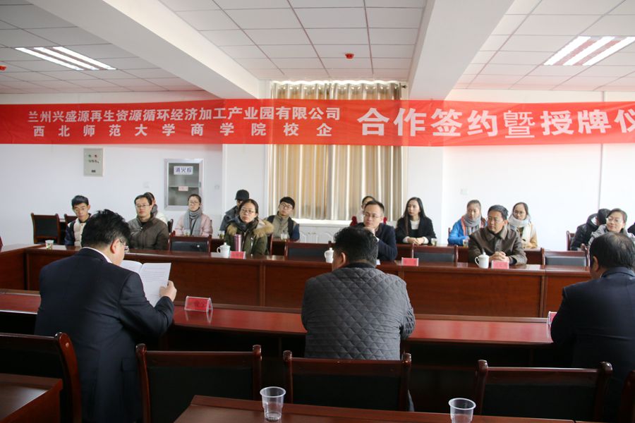 2017年12月22日上午,学院师生一行十八人,前往兰州兴盛源再生资源循环经济加工产业园区有限公司进行参观、学习与交流。此次活动的主要目的是,就双方合作开展学生专业实习及其他校企合作事宜进行洽谈协商,签署校企合作协议,在该公司建立“英国365公司商学院实习基地”。