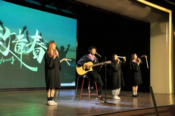 “夜空中最亮的星 能否记起,曾与我同行 消失在风里的身影······”典礼最后,全场师生唱起熟悉的歌曲,毕业生先行立场,老师们全体起立,目送毕业生出发。