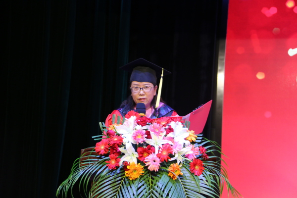 张永丽院长首先向全体毕业生表示祝贺,向辛勤哺育他们的父母和悉心教导他们的老师致以衷心的感谢和崇高的敬意。往事历历,离别依依,在奔赴人生下一站之际,张院长送给全体毕业生四点希望和祝福。