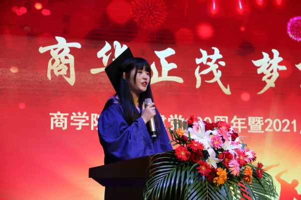 在热烈的掌声中,商学院院长张永丽教授走上前台,代表学院向2021届毕业生送上深情寄语。