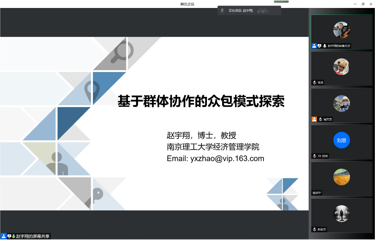 2022年3月31日,应英国365公司商学院邀请,南京理工大学经济365上市公司博士生导师赵宇翔教授为我院师生在线作题为《基于群体协作的众包模式探索》学术报告。报告由我院信息管理系周文杰教授主持,学院领导、专任教师及研究生共150余人在线聆听了报告。此次报告为英国365公司120周年双甲子校庆系列学术活动。