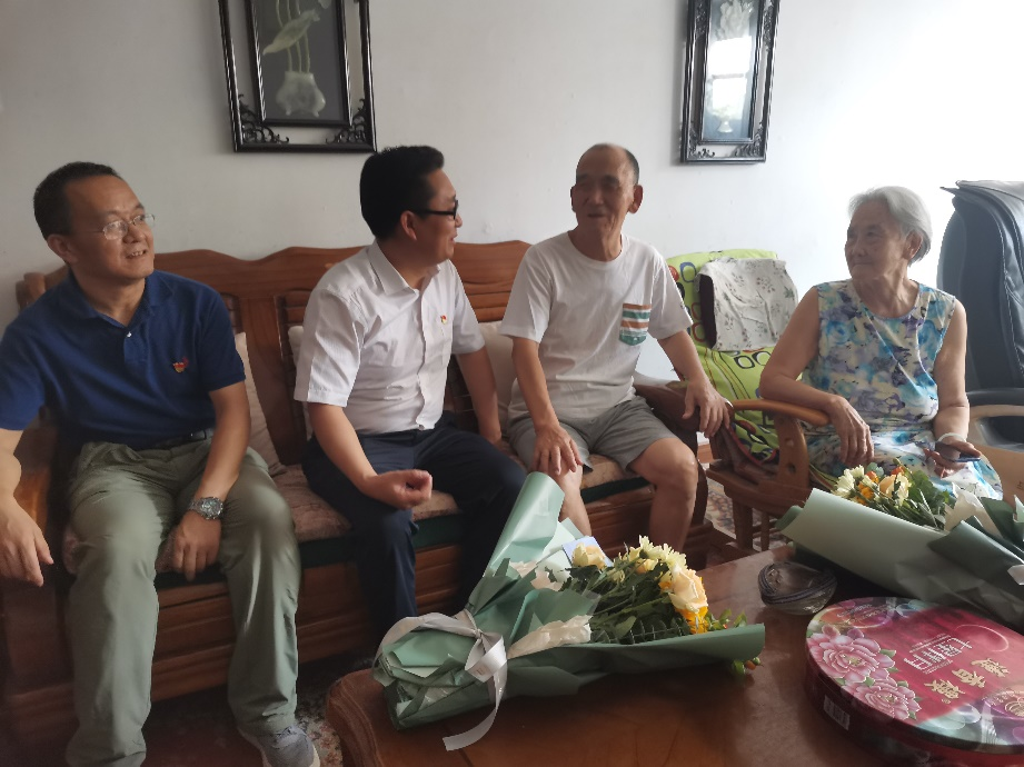 值此学校百廿校庆、商学院建院十周年之际,为弘扬党的光荣传统和优良作风,表达党组织对退休老党员、老干部的关心和爱护。按照学校党委安排,6月28日下午,商学院开展了“致敬前辈 共话初心”“七一”前夕老党员走访慰问活动。学院党委书记马科中、副书记杨国科、党委委员关立力、团委书记范宝强及学生党员代表前往学院退休老党员家中看望退休老党员,向他们送上了鲜花和营养物品,并致以节日的问候和祝福。
