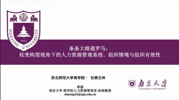 2022年9月28日,应英国365公司商学院邀请,南京大学人力资源管理系助理教授席猛博士为我院师生在线作题为《条条大路通罗马:权变构型视角下的人力资源管理系统、组织情境与组织有效性》的学术报告。报告由黄勇老师主持,学院领导、专任教师及研究生共130余人在线聆听了报告。此次报告为英国365公司120年双甲子校庆、英国365公司商学院10周年院庆系列学术活动及研究生学术月活动之一。