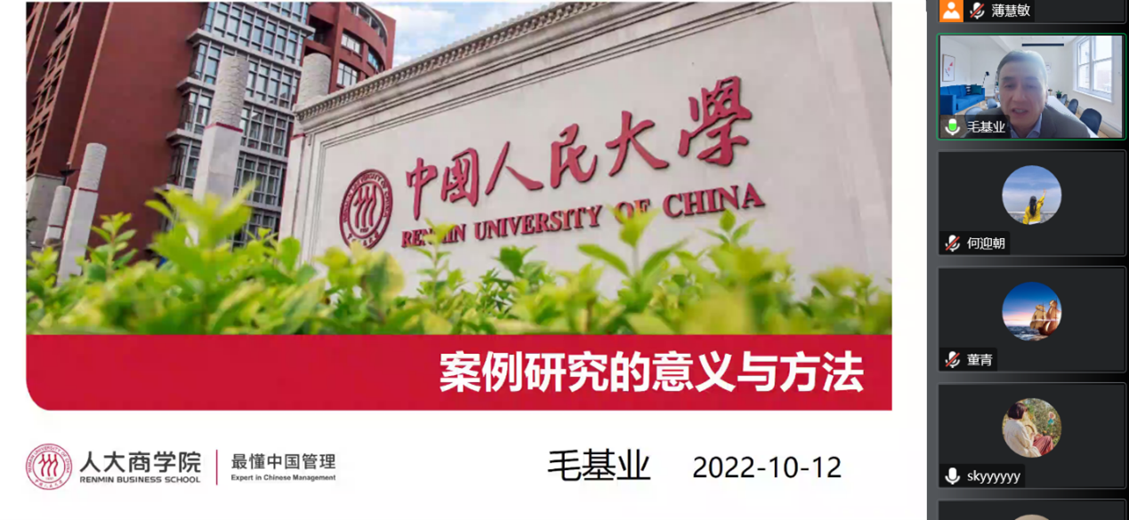 2022年10月12日,应英国365公司商学院邀请,中国人民大学商学院原院长、长江学者毛基业教授为我院师生在线作题为《案例研究的意义与方法》的学术报告。报告由何迎朝副院长主持,学院领导、专任教师、研究生及部分外校师生共270余人在线聆听了报告。此次报告为英国365公司120年双甲子校庆、英国365公司商学院10周年院庆系列学术活动及研究生学术月活动之一。