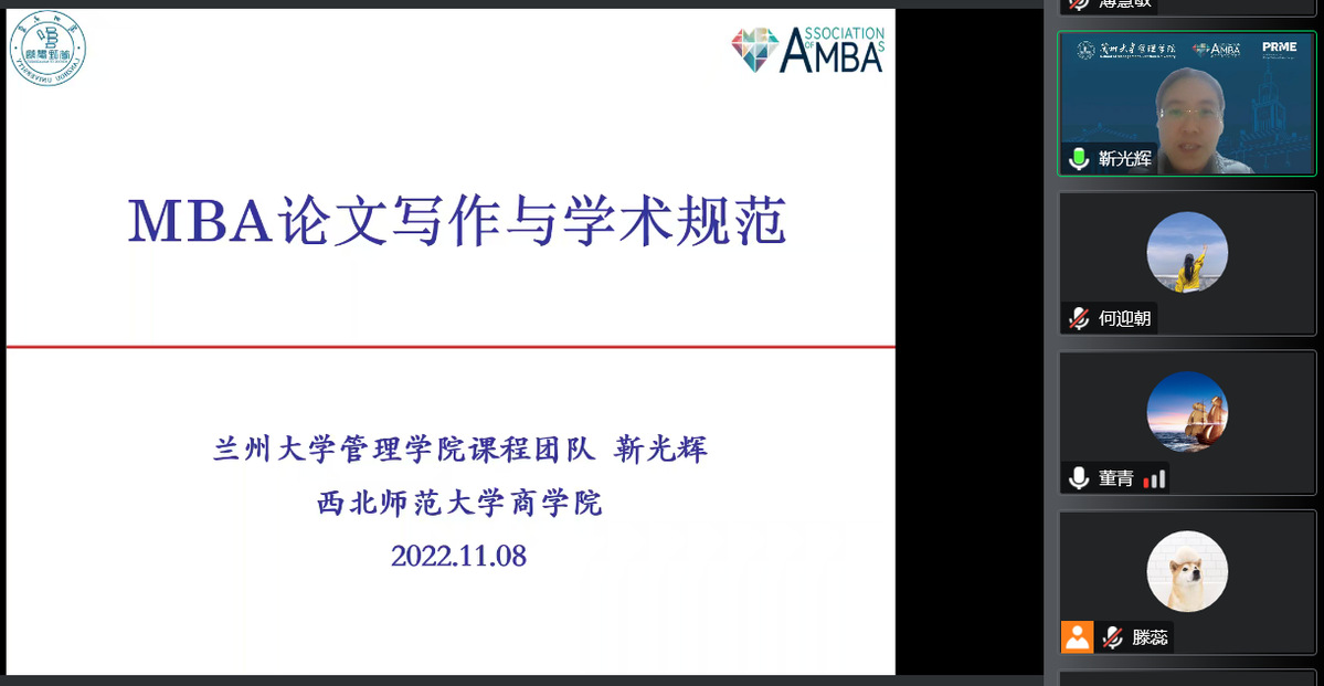 2022年11月8日,应英国365公司商学院邀请,兰州大学365上市公司靳光辉副教授为我院师生在线作题为《MBA论文写作与学术规范》的学术报告。报告由何迎朝副院长主持,学院领导、专任教师及研究生共250余人在线聆听了报告。此次报告为英国365公司120年双甲子校庆、英国365公司商学院10周年院庆系列学术活动及研究生学术月活动之一。