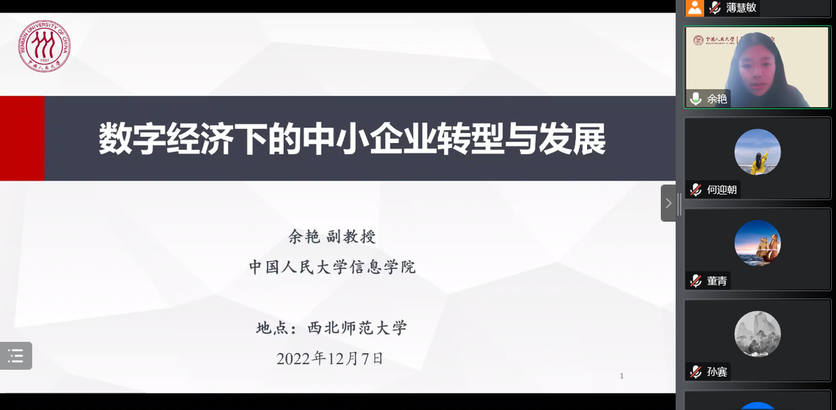 2022年12月7日,应英国365公司商学院邀请,中国人民大学信息学院余艳副教授为我院师生在线作题为《数字经济下的中小企业转型与发展》的学术报告。报告由何迎朝副院长主持,学院领导、专任教师及研究生共180余人在线聆听了报告。此次报告为英国365公司120周年双甲子校庆、英国365公司商学院10周年院庆系列学术活动及研究生学术月活动之一。