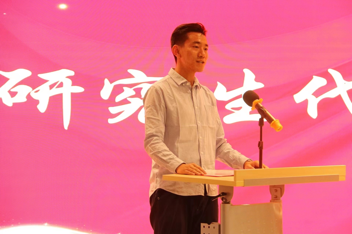 2023级张宇亨作为硕士研究生新生代表发言。他呼吁同学们:牢记初心使命、奋辑扬帆再出发;坚守求学主业,闻鸡起舞正当时;胸怀国之大者,怀抱梦想启新征。