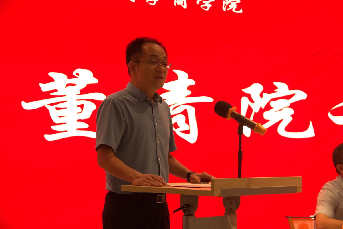 学院院长董青教授梳理了学院悠久的发展历程,阐释了院训“弘道求是,知术乐商”的深刻内涵。在广大新生开启新的大学生活之际,就如何规划学习、迎战未来,董青院长提出了三点建议:一是发奋读书,砥砺才干,提升综合素质;二是善学善用,用创新理论武装头脑,服务社会;三是坚守初心,弘扬商道文化,道济天下创未来。