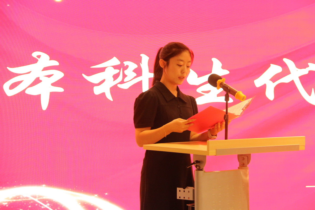 2023级曾桐瑞作为本科生新生代表发言。她分享了自己参加高考心路历程,倡导同学们认真学习,大胆追求真理,争做拼搏奋发的商科追梦人。