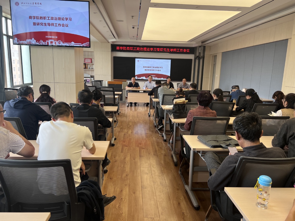 2023年9月21日下午,商学院召开研究生导师工作会议,学院领导班子、全体研究生导师和青年教师参加了会议,会议由董青院长主持。