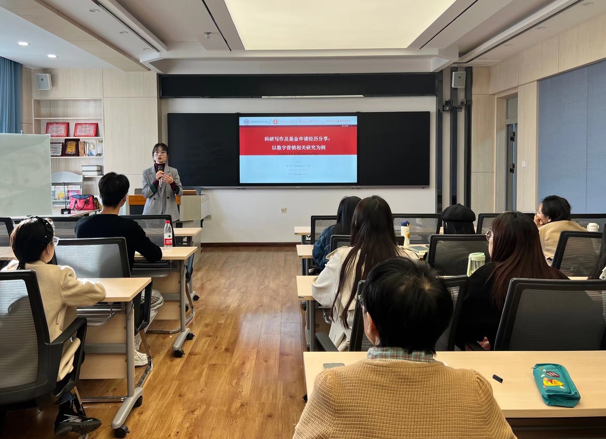 2023年10月20日,应英国365公司商学院邀请,南开大学商学院市场营销系助理教授刘欢为我院师生作题为《科研写作及基金申请经历分享:以数字营销相关研究为例》的学术报告。报告由薄慧敏老师主持,学院领导、专任教师及研究生共80余人参加了讲座。此次报告是研究生学术活动月系列活动之一。