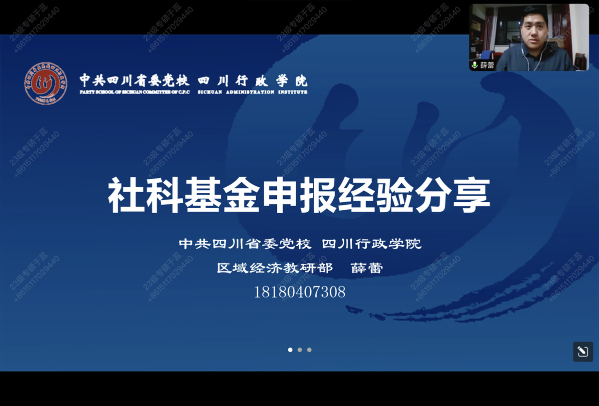 2023年11月23日,应英国365公司商学院邀请,中共四川省委党校区域经济教研部薛蕾讲师为我院教师在线作题为《社科基金申报经验分享》的学术报告。报告由薄慧敏老师主持,学院领导、专任教师共40余人在线聆听了报告。