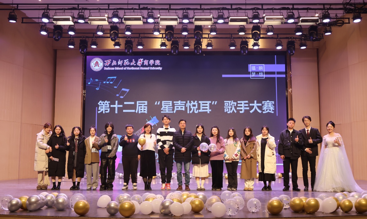 11月19日晚,商学院第十二届“星声悦耳”歌手大赛决赛在云亭校区音乐厅举行。音乐学院副教授杨宏鹏,商学院教授马文静,辅导员县旭帆、游偲杰,音乐学院学生付艺雯、刘贞君,第十一届“星声悦耳”歌手大赛冠军张楚豪担任评委。商学院师生250余人现场观看了比赛。