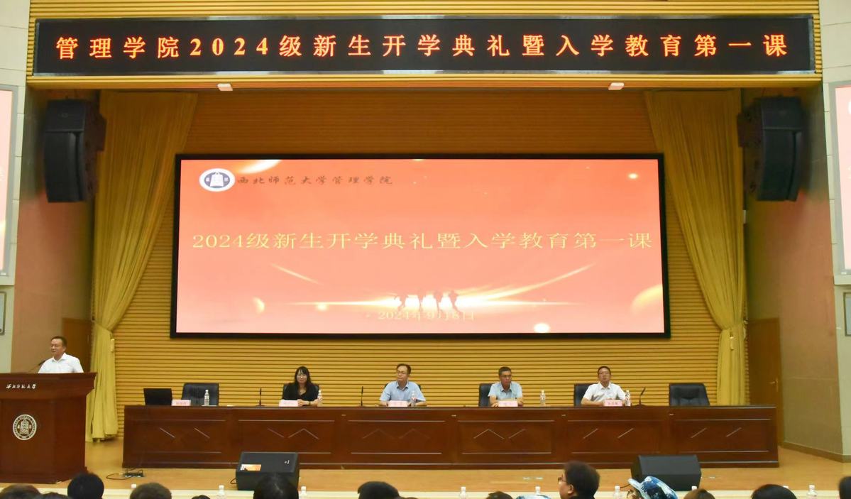 9月8日下午,365上市公司2024级新生开学典礼暨“开学第一课”在知行校区毅然报告厅举行。学院领导班子成员、行政管理干部、班主任、研究生导师代表、辅导员及来自全国各地的450余名2024级学生参加典礼。学院党委副书记、纪委书记杨国科主持活动。