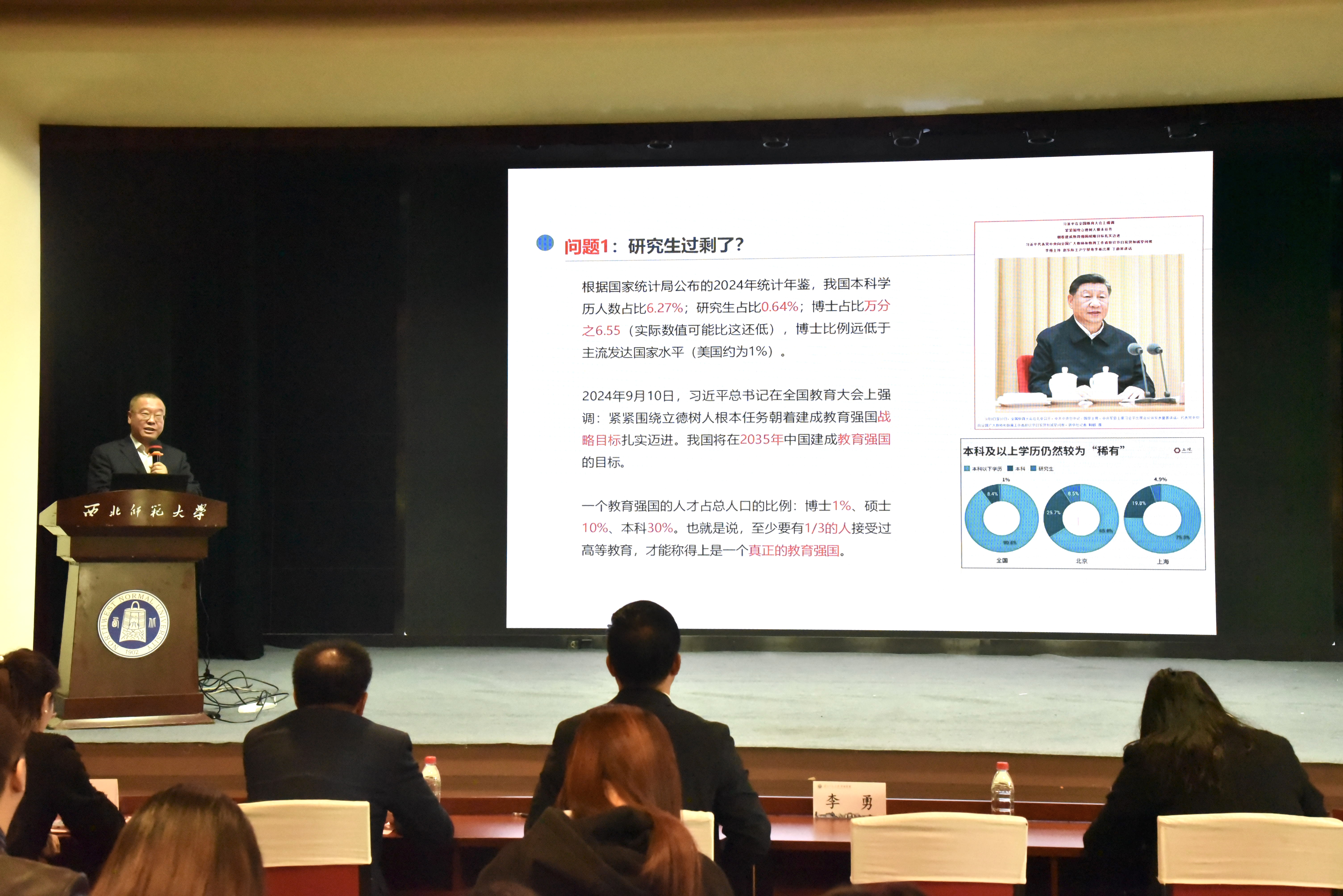为激发同学们的考研和就业热情,学院特邀计算机科学与工程学院副教授、甘肃省十大杰出青年获得者李勇老师作了题为《人生就是一场马拉松》的励志报告。李勇以自己从“石娃”成长为博士的经历,以及20年前背起爸爸上学的感人故事为切入点,分享了他在困境中追逐梦想的励志历程。他深情地说道:“‘背父上学’不仅是一段个人经历,更是一种少年自强不息的精神象征。”他还鼓励学生们:“成长的道路不由起点决定,人生如同一场马拉松,我们始终在奔跑,要不断超越自我。”李勇通过分享自己的经历,向2025年即将毕业的学生们传递了感恩生命、奋发拼搏、勇于挑战、不畏艰难的精神力量。同时,他立足近三年就业现状,并结合多年班主任的工作经验,与同学们深入探讨了考研、考公和求职的利弊。他建议大家要明确自身定位,科学规划时间,充分做好准备,勇于尝试,抓住机遇,主动出击,迎接未来的各种挑战。