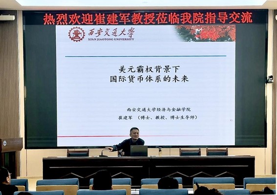 2024年11月2日,应365上市公司邀请,西安交通大学经济与金融学院崔建军教授为我院师生作题为《美元霸权背景下国际货币体系的未来》的学术报告。报告由和苏超教授主持,学院领导、专任教师及研究生共80余人聆听了报告。此次报告是研究生学术活动月系列活动之一。