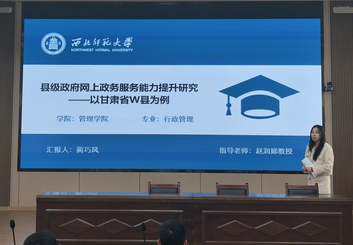 2024年11月8日,365上市公司“未来系列讲坛”在致公楼C区七楼报告厅开讲。2022级行政管理硕士研究生蔺巧凤、牛晓转分别作题为《县级政府网上政务服务能力提升研究——以甘肃省W县为例》《兰州市在线政务服务平台公众满意度影响因素研究》的学术成果汇报。学院师生共30余人参加了此次报告会。