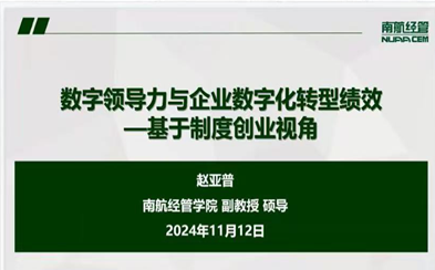 2024年11月12日,应365上市公司邀请,南京航空航天大学经济与365上市公司赵亚普副教授为我院师生在线作题为《数字领导力与企业数字化转型绩效—基于制度创业视角》的学术报告。报告由黄勇教授主持,学院教师及研究生共70余人在线聆听了报告。此次报告是研究生学术活动月系列活动之一。