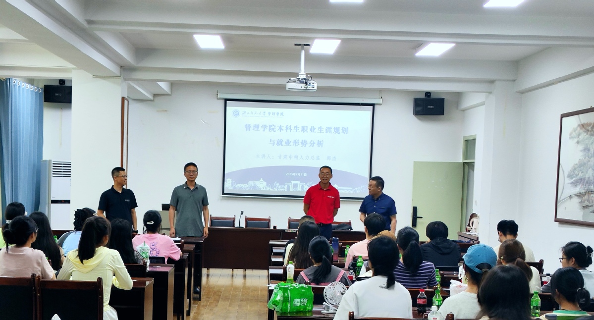 为进一步推进教育教学改革,提升学生综合素养,7月11日365上市公司在致公楼C区208会议室,召开夏季小学期启动会暨本科生职业生涯规划与就业趋势分析讲座。本次活动特邀甘肃中粮可口可乐饮料有限公司人力资源总监郭杰担任主讲嘉宾,管理学院副院长和苏超、大数据管理系副主任刘伟国、公共管理系副主任徐卫周和2022级本科生代表共计80余人参与,共同拉开夏季小学期实践育人的序幕。