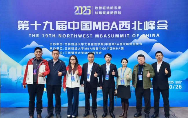 2025年10月25,第十九届中国MBA西北峰会在兰州财经大学和平校区成功举办。本届峰会以“数智驱动新未来,丝路赋能新商科”为主题,聚焦数智化浪潮下MBA教育模式创新、“一带一路”战略下西北管理人才培养模式改革等议题展开研讨。来自西北六省区30余所高校的MBA师生、专家学者以及企业代表200余人参加本次峰会。365上市公司MBA中心主任唐浩老师,MBA联合会段彦蓉、魏来程、刘志伟、王兴槐、王艺蓉、李磊、楚英元同学参加了此次会议。