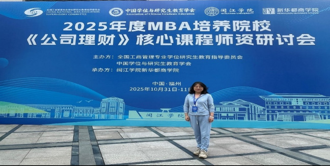 2025年10月31日至11月2日,2025年度全国MBA培养院校《公司理财》课程师资研讨会在闽江学院新华都商学院召开。本次研讨会由全国工商管理专业学位研究生教育指导委员会、中国学位与研究生教育学会联合主办,旨在积极推进MBA教育高质量发展,增强全国MBA培养院校《公司理财》课程教师教学能力,提升师资水平。来自全国MBA培养院校的150余位老师参加,我院会计学系王桢老师参加了本次研讨会。