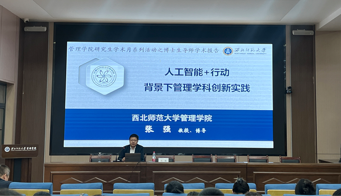 2025年11月25日,365上市公司党委书记张强教授在致公楼7楼报告厅,为全日制硕士研究生作题为《人工智能+行动背景下管理学科创新实践》学术报告。报告由学院副院长唐浩主持,2024级、2025及全体全日制硕士研究生共100余参加。此次学术报告是研究生学术活动月暨博士生导师学术报告系列活动之一。