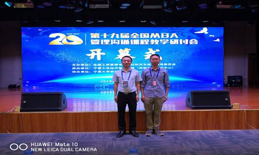 2019年7月8日至9日,商学院工商管理系李承晋老师、和苏超老师参加了由由宁夏大学经济365上市公司(西部发展研究中心)承办、宁夏大学教师教学发展中心协办的第十九届(20周年)全国MBA管理沟通课程教学研讨会议在国际交流中心举行。全国40多个地区的近90所高校的160余名专家学者共享管理沟通教育心得并交流经验。会议期间清华大学钱小军、暨南大学沈远平围绕“管理沟通课程教学研讨会二十年回顾”、“二十年之MBA《管理沟通》教学心得分享”进行了主题报告。宝丰集团副总裁贺浒浜以《推倒中层管理者的沟通墙》为题进行了主题演讲。同时宁夏大学副校长刘炎胜为清华大学钱小军,暨南大学沈远平颁发“教学贡献奖”。在教学示范、交流环节,中国人民大学冯云霞、华北电力大学赵洱岽分别进行了“MBA《管理沟通》教学中知/行/思有机整合的探索”、“基于教育信息化的混合式学习模式的构建与应用——以国家精品课程《管理沟通》为例”的课程示范。本届研讨会还设置了校企对话圆桌会议、校企嘉宾圆桌面对面访谈环节与“案例开发与应用”、“教学设计与组织”两个分会场。作为全国工商管理专业硕士教育指导委员会的品牌年会,MBA管理管理沟通课程研讨会成立时间早、参与范围广、影响力大,已成为各高校从事管理沟通课程教学和研究工作的广大学者进行教学分享和交流的全国性平台。
