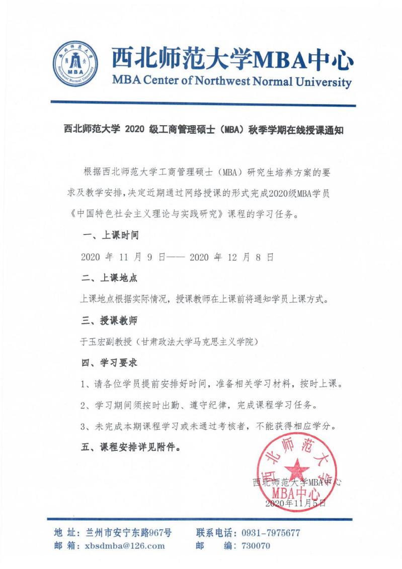 英国365公司 2020 级工商管理硕士(MBA)秋季学期在线授课通知