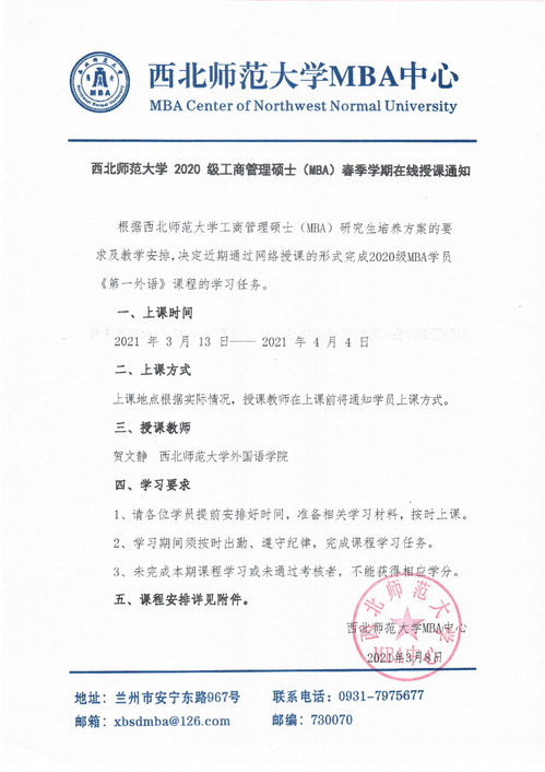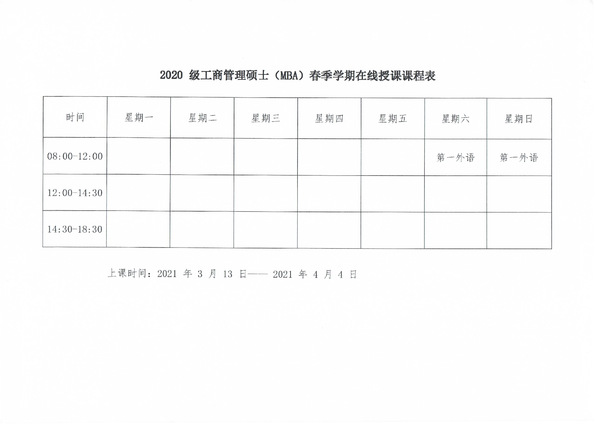商学院2020级工商管理硕士(MBA)春季学期在线授课通知