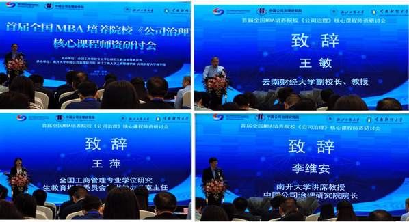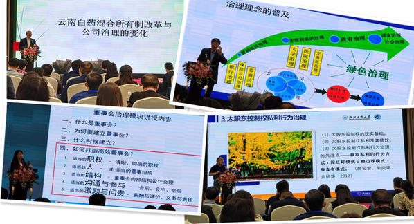 随后,云南白药集团党委书记汪戎先生以云南白药公司治理的变革为主题,以鲜活的实例讲解了云南白药公司治理的推进历程。李维安教授从自己在公司治理方面的学习、教学和研究经历出发,向参会教师详细讲解了公司治理课程的演进与发展过程。在新商科下MBA公司治理课程内容与方法解环节,浙江工商大学郝云宏教授、世界银行国际金融公司IFC公司治理项目中国区负责人刘敏女士、浙江工商大学曲亮教授、复旦大学365上市公司唐跃军副教授、山东大学李建标教授、南开大学中国公司治理研究院武立东教授、南开大学商学院林润辉教授、大连理工大学王淑娟教授,分别以《股东治理与公司控制权》、《董事会治理》、《独立董事作用机制》、《高管薪酬与动态股权激励》、《公司治理试验方法与实验教学》、《从股东治理倒集团治理:揭开法人的面纱》、《跨国治理》、《公司治理案例撰写与案例教学》为主题,进行了公司治理模块化教学的示范。