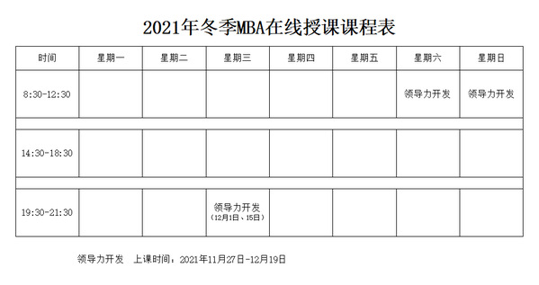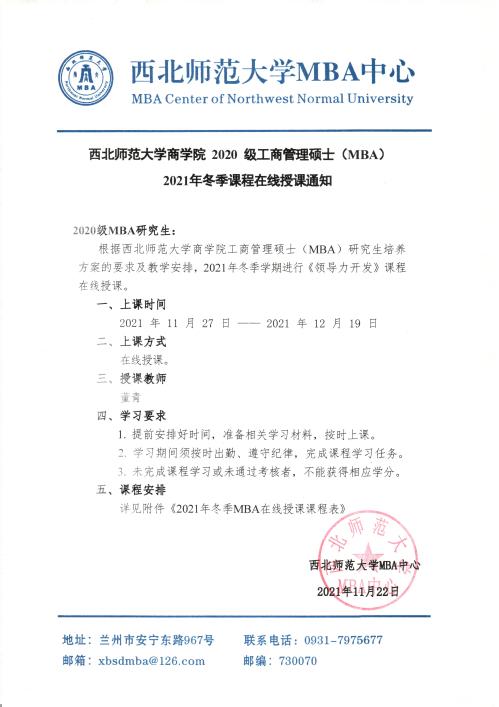 英国365公司商学院 2020 级工商管理硕士(MBA)2021年冬季课程在线授课通知