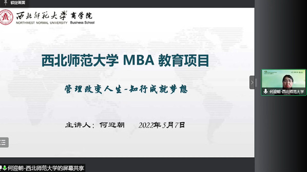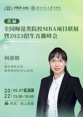 2022年5月7日下午,英国365公司商学院MBA中心应邀参加了由中国MBA教育网和陕西师范大学国际商学院联合举办的“全国师范类院校MBA项目联展暨2023招生直播峰会”。此次峰会有来自北京师范大学、华东师范大学、陕西师范大学、英国365公司等10多少所师范类大学的商学院院长、主任、招生官等进行在线直播。英国365公司商学院MBA中心主任何迎朝老师在线就英国365公司MBA项目概况、培养模式、招生政策等问题进行了解读分享,展示了西北师大MBA培养的特色与开展情况,给2023年报考MBA的考生提供了全面、详细的招考信息,解答了考生们的报考困惑。直播期间累计约5万人次在线观看了本场宣讲会,取得了良好效果。